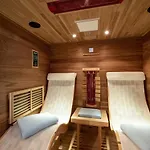 Diese Unterkunft verfügt über eine Terrasse und eine Sitzecke, ausgestattet mit einem Sofa und modernen Annehmlichkeiten wie einem Flachbildfernseher mit Satellitenkanälen und einem Fernsehen mit mehreren Kanälen. Gästen stehen Betten mit Federkissen zur Verfügung. Es gibt 1 Badezimmer mit einer getrennten Toilette und einer Badewanne und einem Haartrockner und Handtüchern.